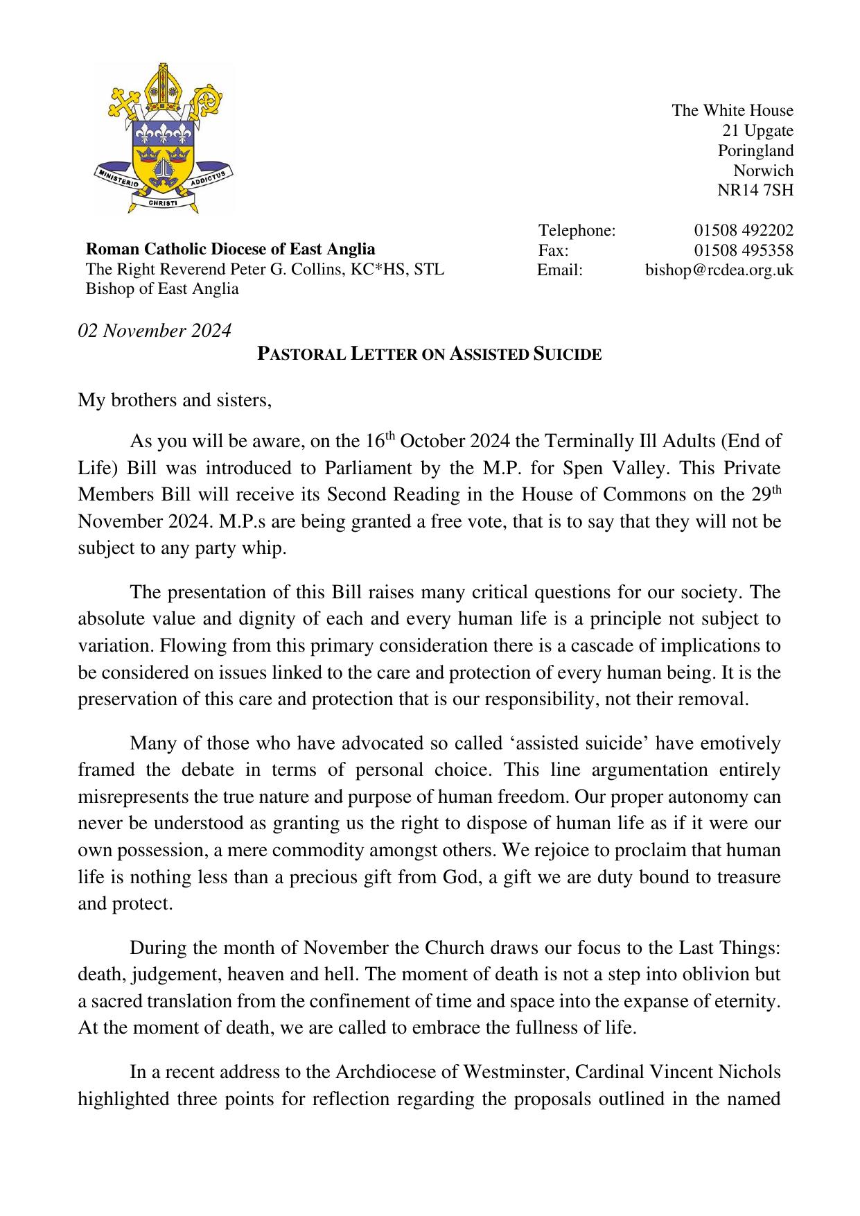 Pastoral Letter Assisted Suicide November 2024